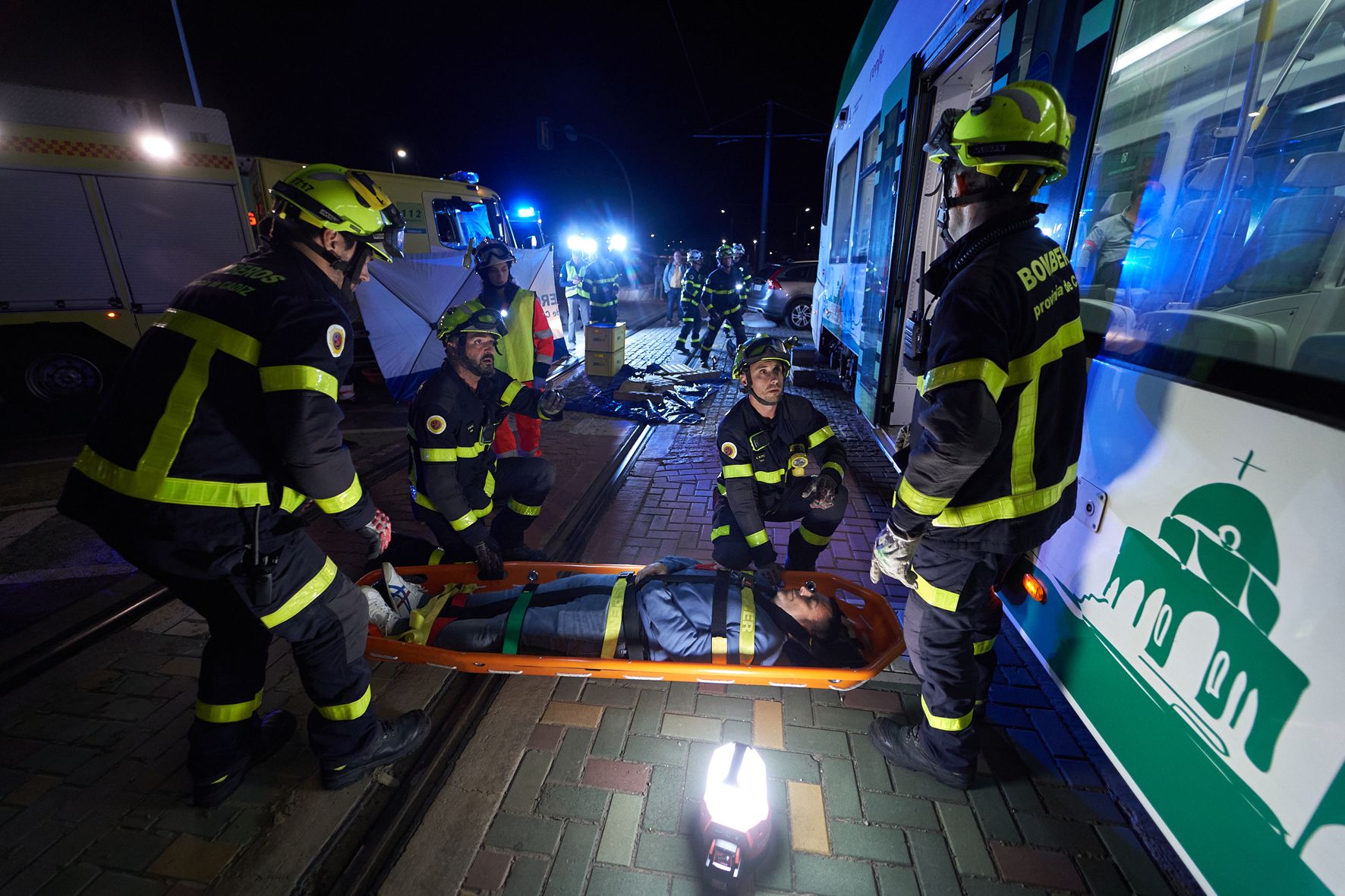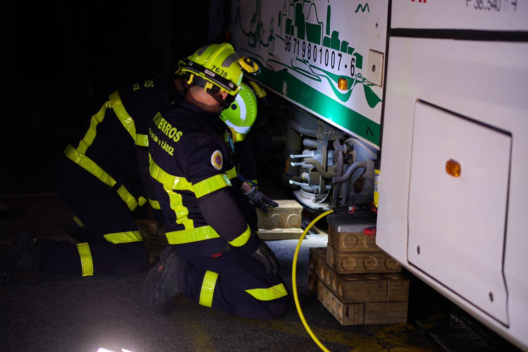 Fuerzas de emergencias y servicios sanitarios de la Bahía de Cádiz participaron, en la pasada madrugada del 24 de octubre, en un simulacro organizado por la Agencia de Obra Pública y Renfe, responsables del funcionamiento del Trambahía, para evaluar la capacidad de reacción del sistema tranviario frente a un accidente grave.